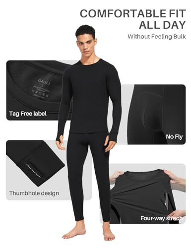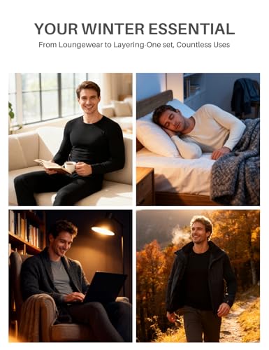 Mens Thermal Set with thumbholes in cuffs prevents cold air from escaping through the cuffs, also helps keep sleeves in place. Head-to-Toe Protection making it ideal for winter outdoor activities like Skiing, Camping, Cycling or as a cozy pajama set at home