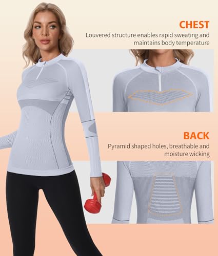 Seamless: Crafted using high-density seamless knitting technology, this workout shirt minimizes seam friction, providing a snug fit that is both wind-resistant and cold-protective. The zipper up design makes it easy to put on and take off
