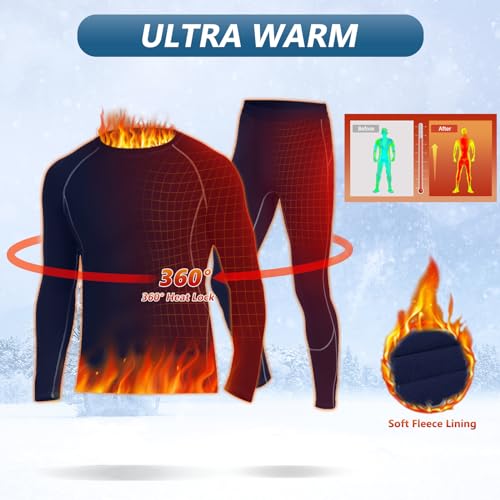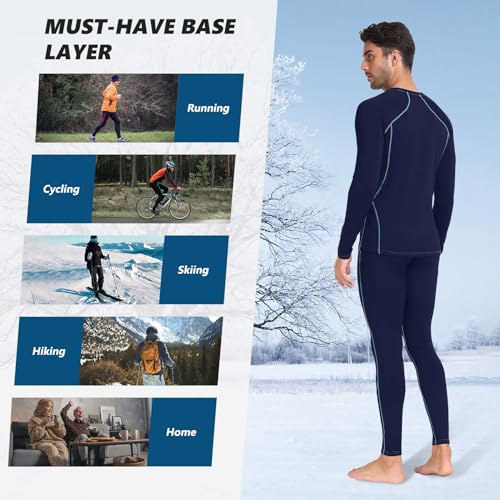 【Elasticity & Warmth Material】Thermal underwear mens set is made from a blend of 95% polyester and 5% elastane, ensuring warmth and comfort during winter. The high elasticity allows for easy movement, making it suitable for activities like skiing, football, cycling, and running.