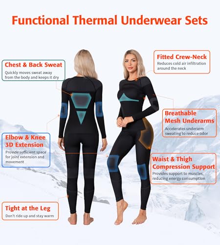 Heat & Warmth: Women’s thermal underwear set features self-heating yarn technology that absorbs visible light and generates heat, effectively raising the body surface temperature to withstand the cold