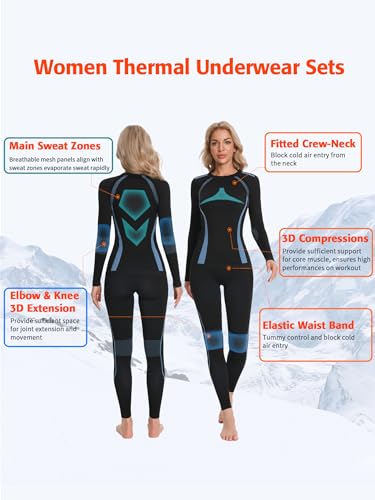 Moisture Wicking: This womens thermal base layer placed mesh panels align with sweat zones that help sweat dry fast, retains heat, and enhances breathability for dry comfort