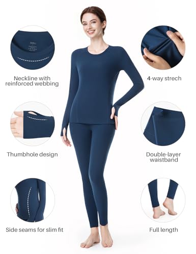 LIGHTWEIGHT & ULTRA-SOFT: Womens thermal underwear set designed with a micro fleece lining & stretch material, like a second skin for minimizing heat loss, lightweight and warm. Ultra soft underwear keep you comfortable and warm throughout the day