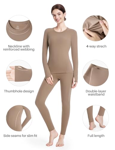 LIGHTWEIGHT & ULTRA-SOFT: Womens thermal underwear set designed with a micro fleece lining & stretch material, like a second skin for minimizing heat loss, lightweight and warm. Ultra soft underwear keep you comfortable and warm throughout the day